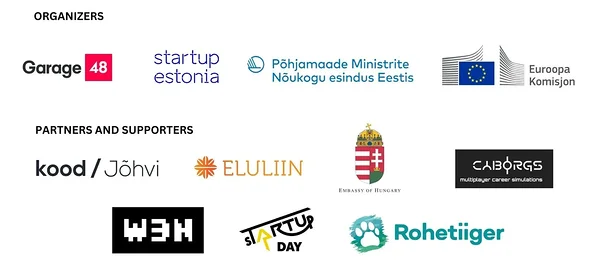 Partners and Supporters: Kood/Jõhvi, Cyborgs, Embassy of Hungary in Tallinn, Eluliin Mittetulundusühing, Rohetiiger, sTARTUp Day, and W3N